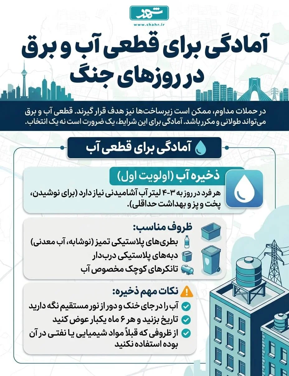 صفحه اصلی•اجتماعیتاریخ خبر: ۲ فروردین ۱۴۰۵ - ۱۰:۴۳آمادگی برای قطعی آب و برق در روزهای جنگبرای قطعی آب و برق در روزهای جنگ چگونه آماده شویم؟برای قطعی آب و برق در روزهای جنگ چگونه آماده شویم؟ مهم ترین اخبارنگاهی به اولین روز مادر شدن بازیگران و سلبریتی های مشهور سینمای ایران+ عکسلامبورگینیسواری ستاره استقلال در اسپانیا + عکسعکس| سفر در زمان؛ «مریم افشار» 31 سال بعد سریال در پناه تو و در 60 سالگیزندگینامه هلن نقی لو الهام سریال بیگانگانتیپ شلخته شراره رخام در یک جشنواره هنریعکس| سفر در زمان؛ «قاضی» سریال بیگانگان با ظاهر متفاوت در تهران؛ سال 1404سفر در زمان | پوستر تبلیغاتی علی لاریجانی در انتخابات ۱۳۸۴ + عکسجنگقطعی آبقطعی آب تهرانقطعی برقکپی لینک کوتاهما را در شبکههای اجتماعی دنبال کنیدآپاراتاخبار مرتبطمریلا زارعی با حضور پر شور در میدان تجریش حمایت خود را از کشور و نیروهای مسلح نشان دادجنایات محیطزیستی جنگ رمضان قابلیت پیگیری در محاکم بینالمللی داردمهم: تسهیلات ویژه قرض الحسنه دولت برای آسیب دیدگان جنگ + جزییات مبلغ و شیوه دریافتعقبنشینی بزرگ ترامپ در جنگ با ایران / محاصره دریایی به کجا رسید؟آمریکا در مدت آتشبس به ایران حمله میکند؟بدون دیدگاه.