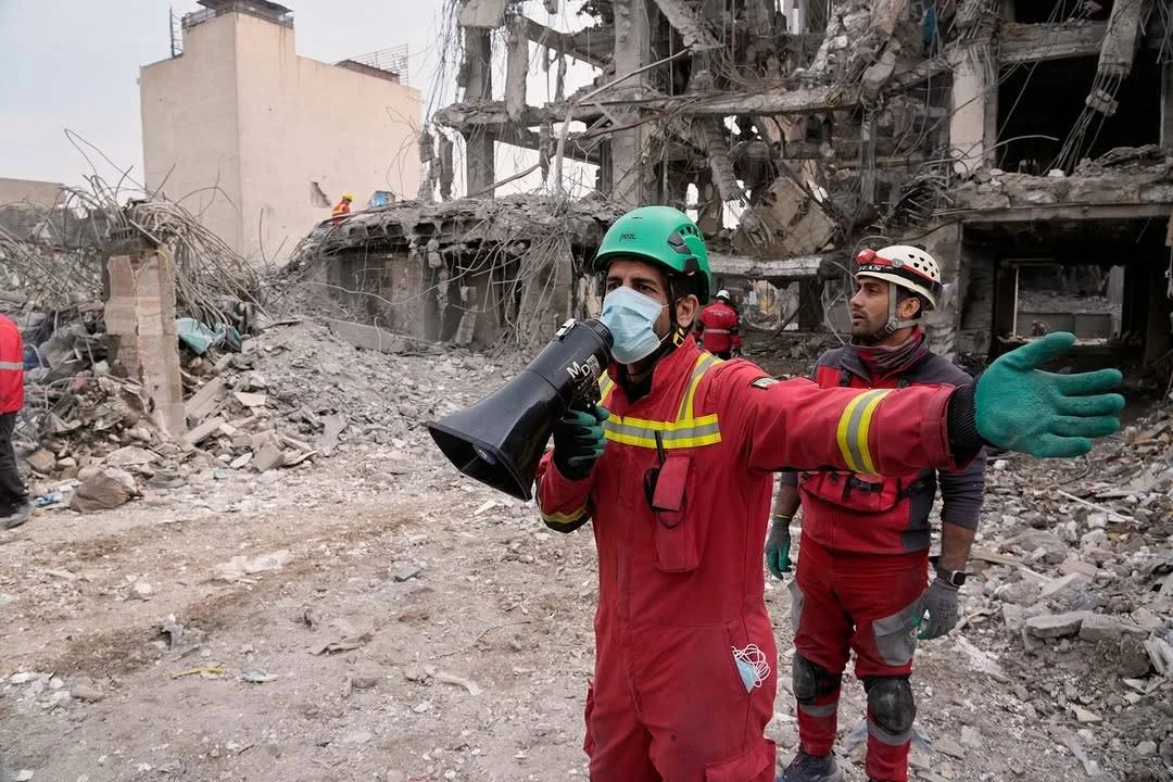 ثبت لحظات پس از انفجار در تهران و حضور نیروهای هلال احمر برای کمکرسانی را می بینید.