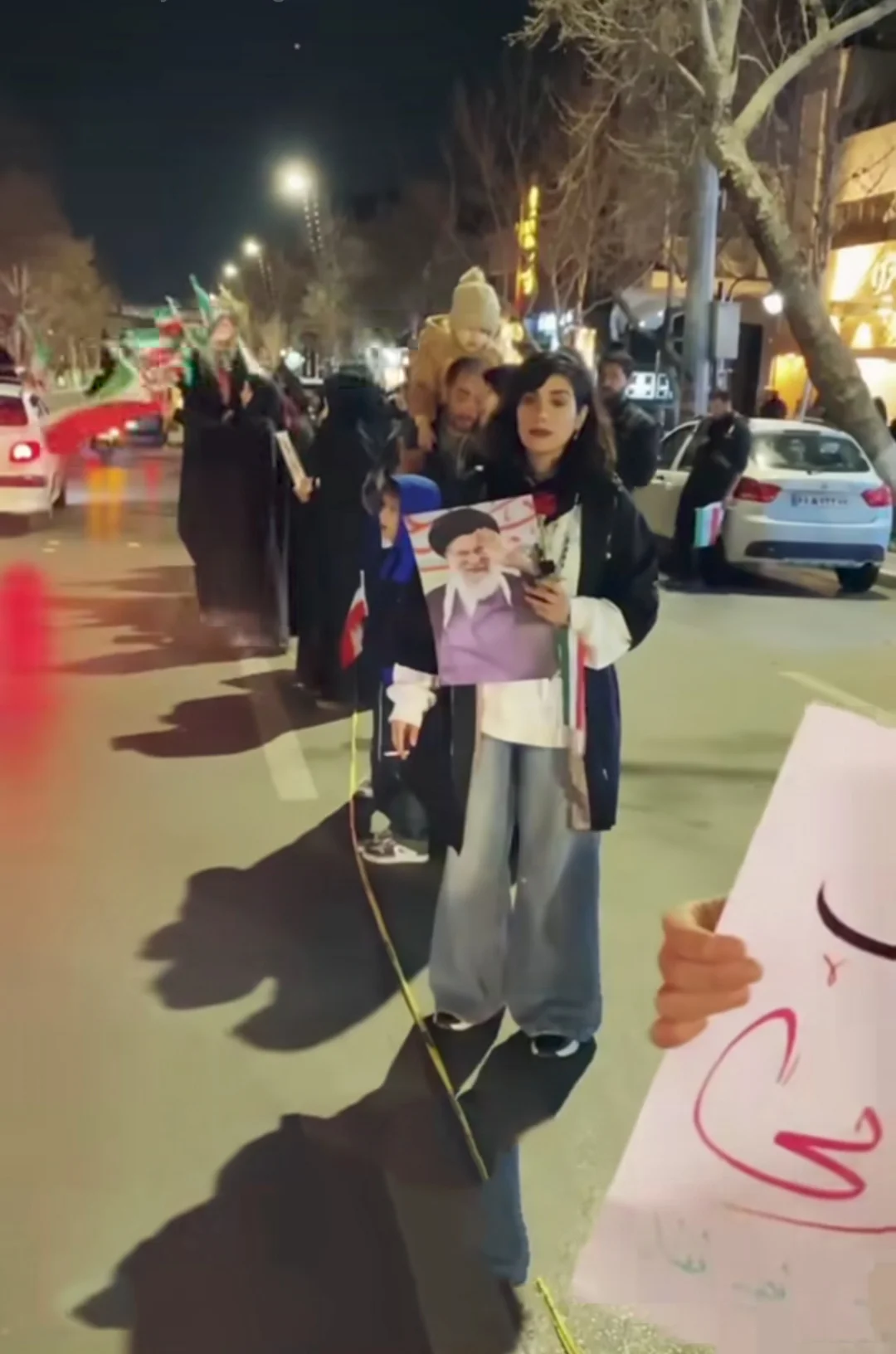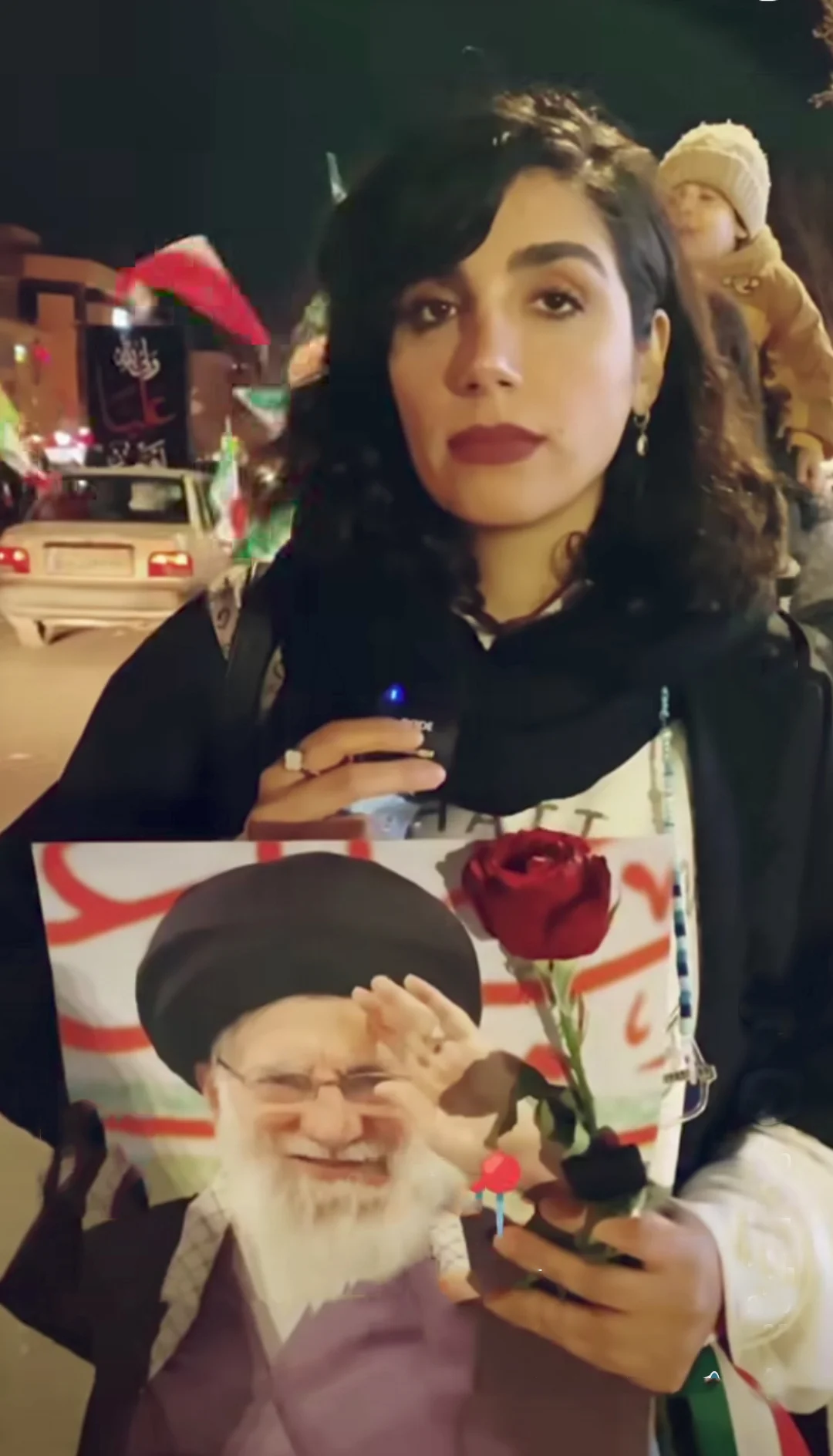 او به خبرنگار میگوید «به خاطر رهبرم اومدم. چون دوسش دارم... خواستم بگم که رهبر متعلق به جامعه مذهبی فقط نیست. متعلق به ما هم هست. تا وقتی که بهمون بگن، میایم تا انتقام بگیریم ازشون. خدا نگهدارت باشد دختر شجاع وطن...