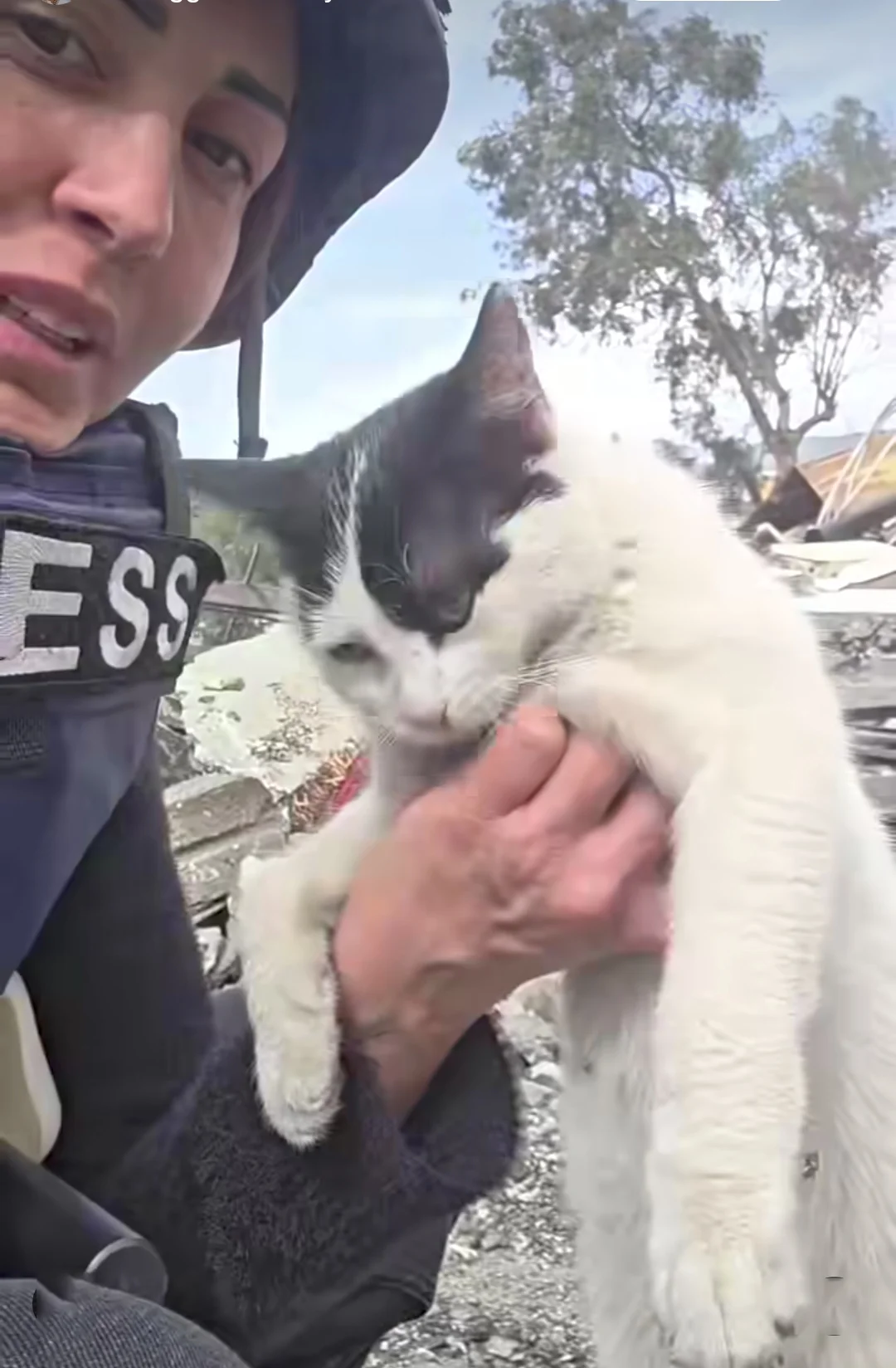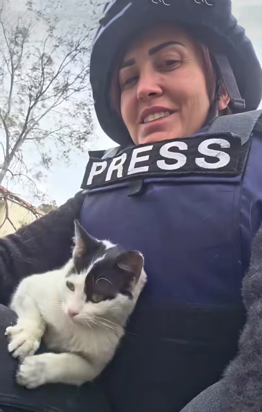 کمی از تلخی عکس بالا فاصله بگیریم و به النبطیه در لبنان برویم. جایی که آمال خلیل، خبرنگار و روزنامهنگار در خرابههای نبطیه با یک گربه بازیگوش خانگی مواجه میشود و دقایقی با او سر و کله میزند. گربهای که در ویرانه خانه سابقش هنوز مانده ولی از صاحبش خبری نیست.