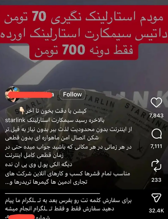 تشدید محدودیت‌ها و اختلالات اینترنتی در هفته‌های اخیر، بازار سیاه تجهیزات و ابزارهای دور زدن فیلترینگ را بیش از پیش داغ کرده است. در یکی از تازه‌ترین موارد، تعدادی از صفحات اینستاگرامی اقدام به فروش محصولی با عنوان «سیم‌کارت استارلینک» به قیمت ۷۰۰ هزار تومان کرده‌اند؛ محصولی که از نظر فنی هیچ وجود خارجی در دنیا ندارد.