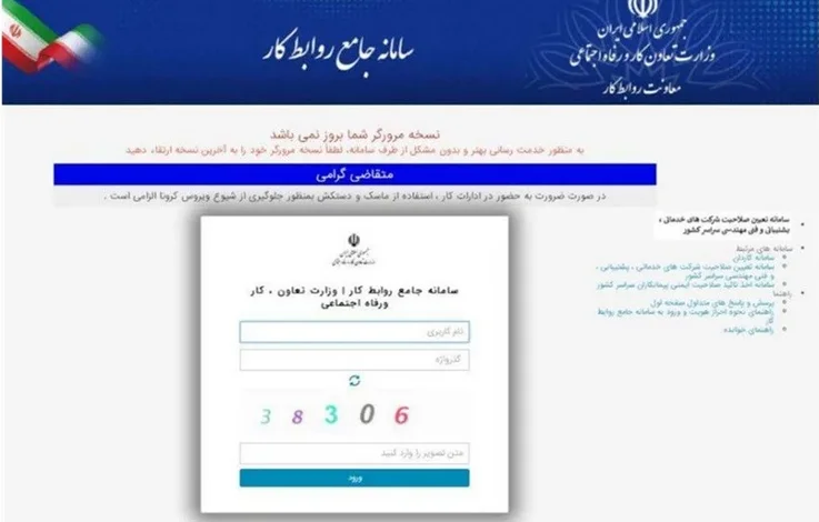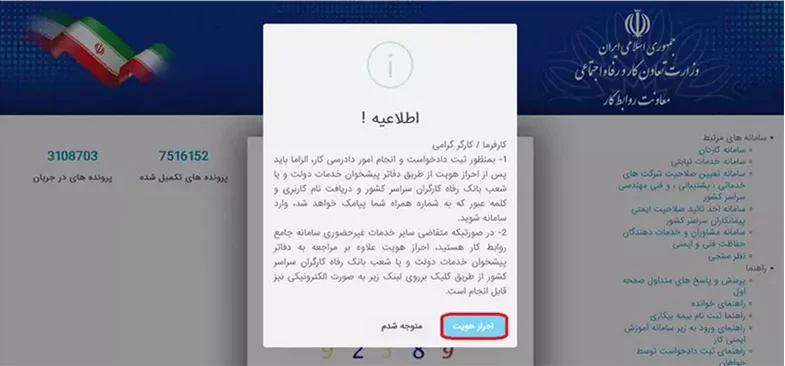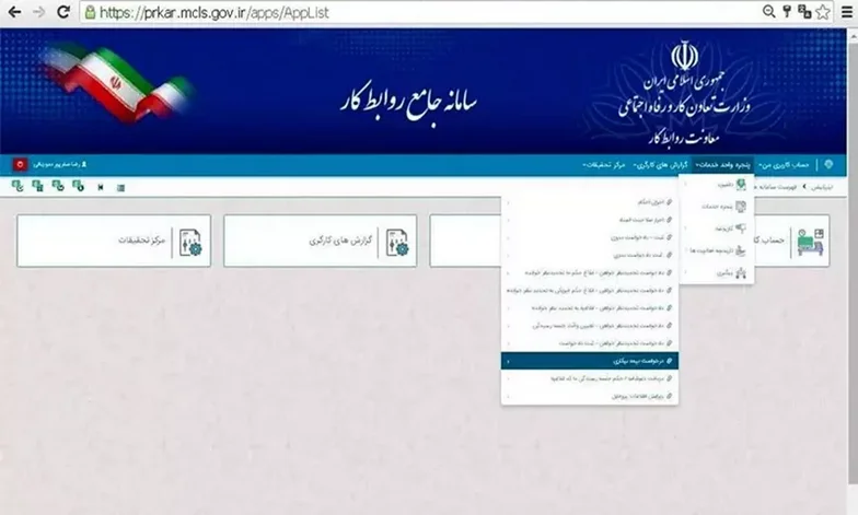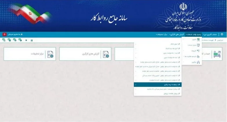 1- احراز هویت و ثبت درخواست در سامانه جامع روابط کار