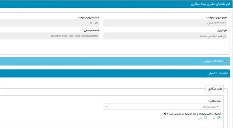 پس از تایید هویت، درخواست رسمی شما برای دریافت بیمه بیکاری در سامانه ثبت میشود. در این مرحله باید اطلاعات دقیقتری از وضعیت شغلیتان، تاریخ بیکاری و سایر جزییات مرتبط را وارد کنید.