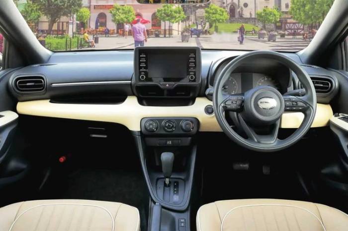 بااین‌حال، فرم هاچ‌بک عقب ویوت جدید با دیگر قسمت‌ها کمی ناهماهنگ به نظر می‌رسد؛ خصوصاً اگر آن را با طراحی زیبای نسل قبلی مقایسه کنیم. برخلاف بیرون، کابین ویوت اصلاً کلاسیک به نظر نمی‌رسد زیرا به‌جز لوگوی میتسوکا روی غربیلک فرمان و تریم روشن روی درها، داشبورد و صندلی‌ها، همه‌چیز مثل نمایشگر سیستم اطلاعاتی-سرگرمی مستقیماً از یاریس گرفته شده‌اند. این اتومبیل ۴۰۹۰ میلی‌متر طول، ۱۶۹۵ میلی‌متر عرض و بین ۱۵۰۰ تا ۱۵۱۵ میلی‌متر ارتفاع دارد که یعنی ۷۰ میلی‌متر کشیده‌تر از یاریس است.