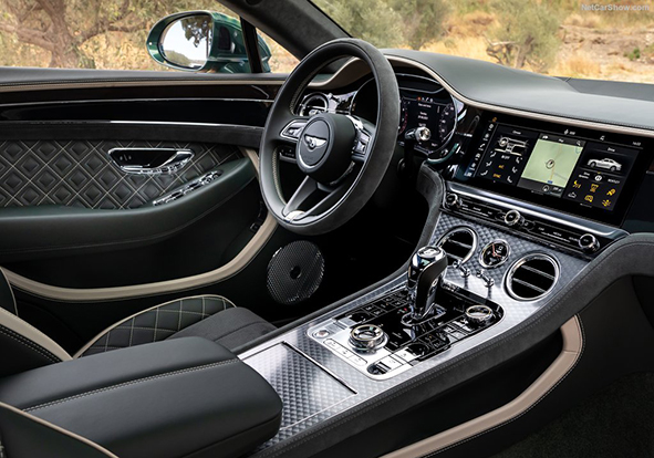 مشتریان بنتلی میتوانند خودرو خود را از میان 15 رنگ مختلف بدنه، 17 نوع چرم طبیعی صندلی و هفت نوع رنگبندی مختلف تریم داخلی سفارش دهند. جالب آنکه تمامی قسمتهای چرمی داخل کابین از جمله پوشش صندلیها و غربیلک فرمان به صورت دستدوز ساخته و پرداخته شدهاند.