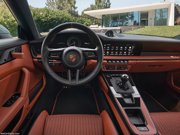 عقربه سرعتسنج 911 Carrera ST جدید با جعبه دنده اتوماتیک 8 سرعته تنها 5/3 ثانیه زمان نیاز دارد تا خود را از رقم صفر به عدد 100 کیلومتر بر ساعت برساند. یعنی سریعتر از بسیاری از محصولات لامبورگینی و فراری! جالب است اشاره کنیم که شتاب نسخه مسابقهای پورشه 911 GT3 RS 3/3 ثانیه است. سقف سرعت محصول جدید پورشه نیز 300 کیلومتر بر ساعت اعلام شده است.