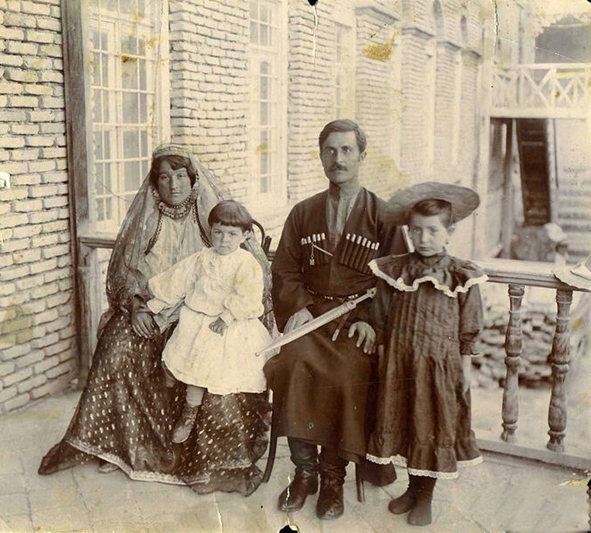 از دنیای زنان قاجار؛ از راست: تاتیانا (دختر صوفیا خانم و بیوکخان)، دایی کوچک (برادر صوفیا خانم) با همسر و دخترش.