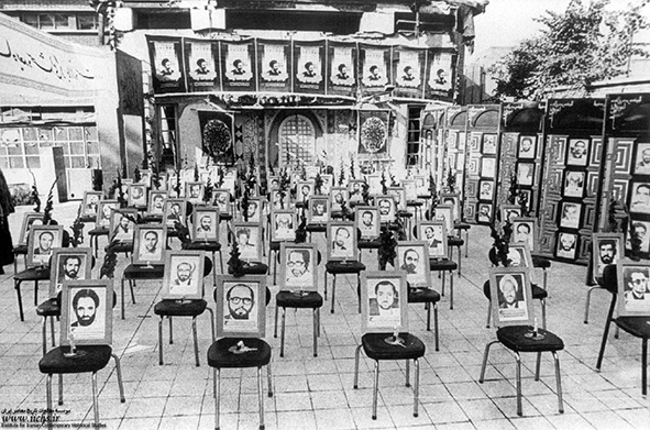نمایی بازسازی شده از محل انفجار در دفتر مرکزی حزب جمهوری اسلامی - 7 تیر 1360 .(موسسه مطالعات تاریخ معاصر)