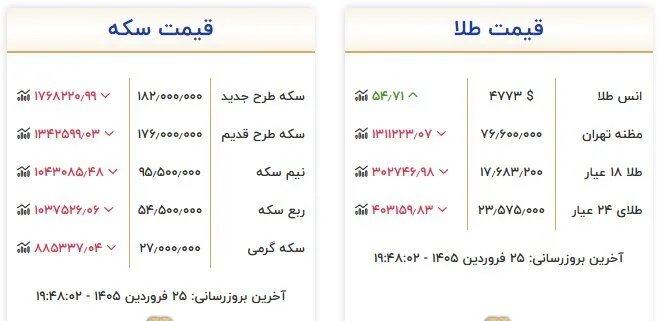 قیمت انواع طلا و سکه در بازار با ریزشی ملموس همراه بود.