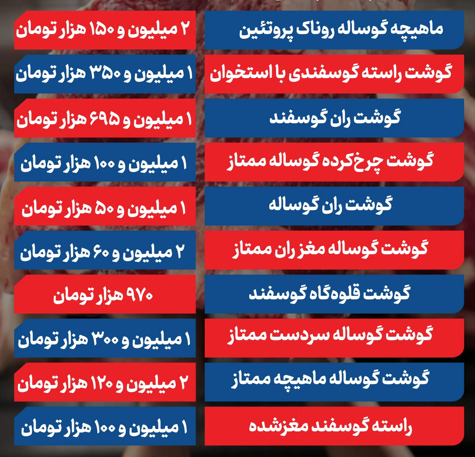 قیمت انواع گوشت قرمز امروز سه شنبه ۲۸ بهمن ۱۴۰۴ براساس استعلام از خرده فروشیهای سطح شهر اعلام شد.