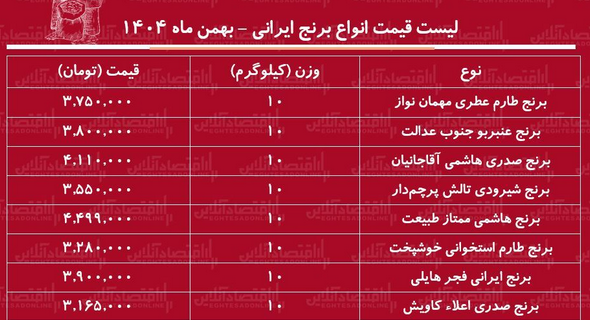 بررسی آخرین نرخها نشان میدهد قیمت انواع برنج ایرانی، به ویژه اقلام پرطرفدار و کیفی، به سطوحی رسیده که برای بسیاری از خانوارها دور از دسترس شده و عملاً برنج ایرانی را در آستانه تبدیل شدن به یک کالای لوکس قرار داده است.