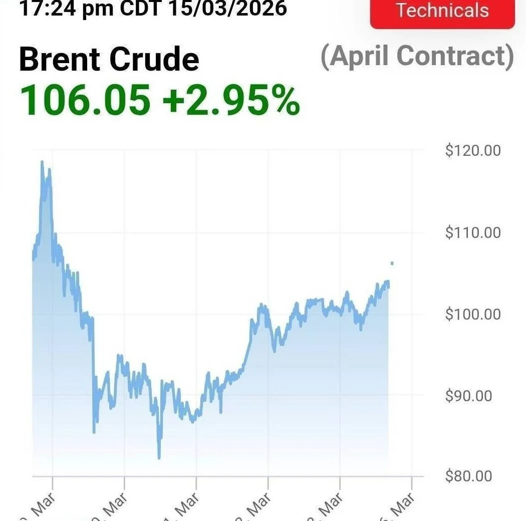 قیمت نفت از زمان تجاوز آمریکایی صهیونی به کشورمان در حدود 60 درصد افزایش یافته و از 67 دلار در آغاز جنگ به بیش از 106 دلار در روز شانزدهم جنگ رسیده است.