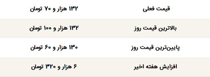 بالاترین قیمت ثبت شده دلار در معاملات روز گذشته 132 هزار و 100 تومان و کمترین نرخ عرضه این ارز نیز 130 هزار و 60 تومان بوده است.