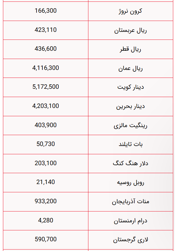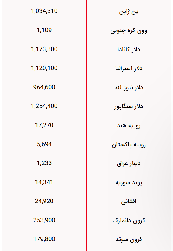 قیمت دلار، یورو، پوند و سایر ارزها امروز جمعه ۱۰ بهمن را میتوانید در جدول زیر مشاهده نمایید.