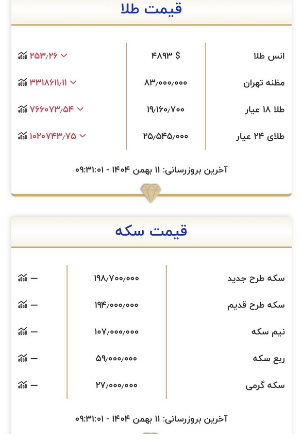 صفحه اصلی•اقتصادیتاریخ خبر: ۱۱ بهمن ۱۴۰۴ - ۱۳:۳۵قیمت طلا امروز شنبه ۱۱ بهمن ۱۴۰۴؛ طلای ۱۸ عیار کانال ۱۹ میلیون تومان را هم از دست میدهد؟قیمت طلا امروز شنبه ۱۱ بهمن ۱۴۰۴ مشخص شد.قیمت طلا امروز شنبه ۱۱ بهمن ۱۴۰۴ مشخص شد. قیمت طلا و سکه زا در جدول زیر مشاهده میکنید. مهم ترین اخباردُزهای نایاب گارداسیلزمان پخش سریال هری پاتربیوگرافی تلخ کاترین اوهارا / بازیگر فیلم جاودانه "تنها در خانه"قیمت طلا و سکه امروز شنبه 11 بهمن 1404 / طلا، معطل روی خط مذاکراتبغض زیبا بروفه ترکید / همسرم خیلی ... + فیلمسقوط وحشتناک قیمت طلا امروز شنبه 11 بهمن 1404قیمت خودروهای داخلی و مونتاژی امروز شنبه 11 بهمن 1404 + جدولرکورد قیمت طلاریزش قیمت طلاقیمت طلاقیمت طلا 1404کپی لینک کوتاهما را در شبکههای اجتماعی دنبال کنیدآپاراتاخبار مرتبطمثقال طلا 86 میلیونی شد/ پیش بینی قیمت طلا و سکه شنبه ۱۱ بهمن ۱۴۰۴نوسانات شگفتانگیز طلاقیمت طلا به 22 میلیون تومان هم رسید! / حباب سکه در تمامی قطعات افزایشی استقیمت طلا و سکه امروز پنجشنبه ۹ بهمن 1404 / طلا به رویا پیوستقیمت طلا از 20 میلیون تومان گذشت/ پیشبینی قیمت طلا و سکه ۹ بهمن ۱۴۰۴بدون دیدگاه.