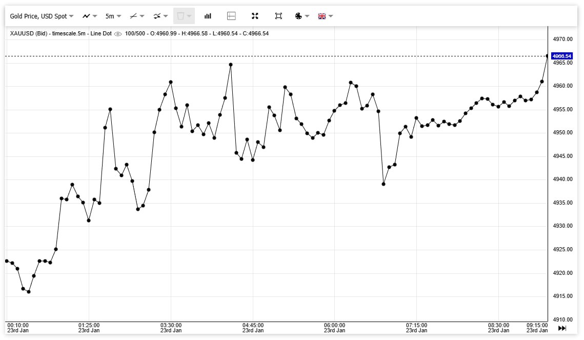 به گزارش هفت صبح، قیمت جهانی طلا در آستانه ورود به کانال 5 هزار دلار قرار دارد و امروز جمعه 3 بهمن 1404 رشد بیش از 150 دلاری داشته است.