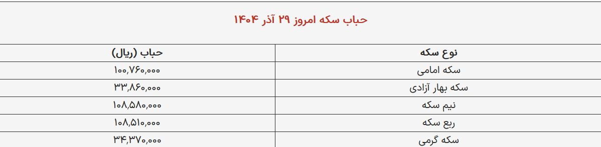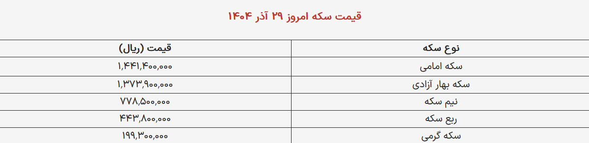 قیمت سکه امروز شنبه ۲۹ آذر ۱۴۰۴
