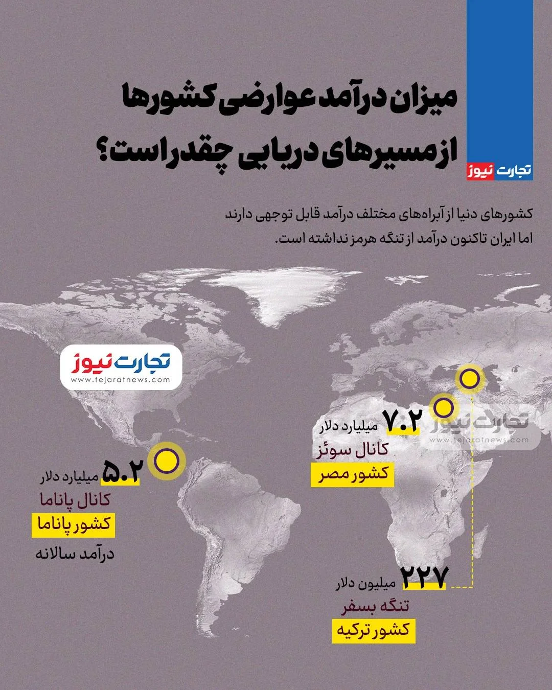 اینفوگرافی زیر میزان درآمد کشورهای مختلف از مسیرهای دریایی را نشان می دهد.