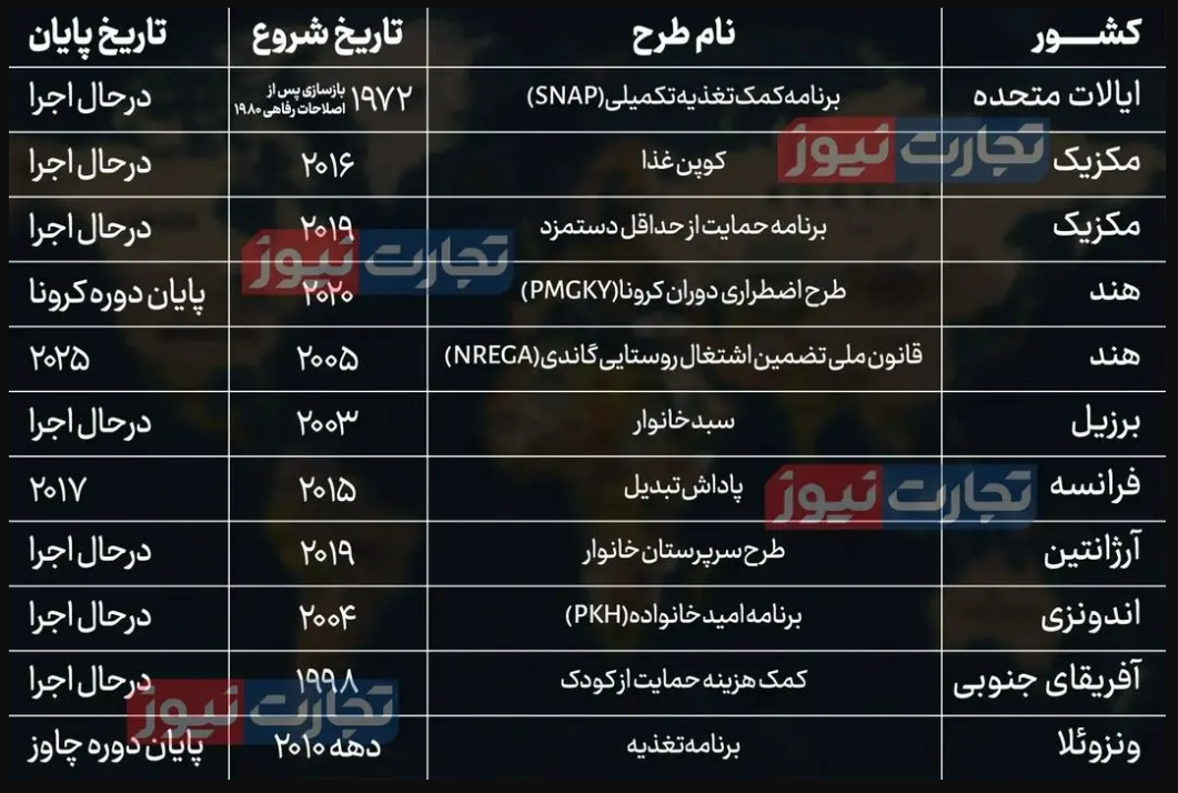 پرداخت یارانه و کالابرگ در کشورهای دیگر