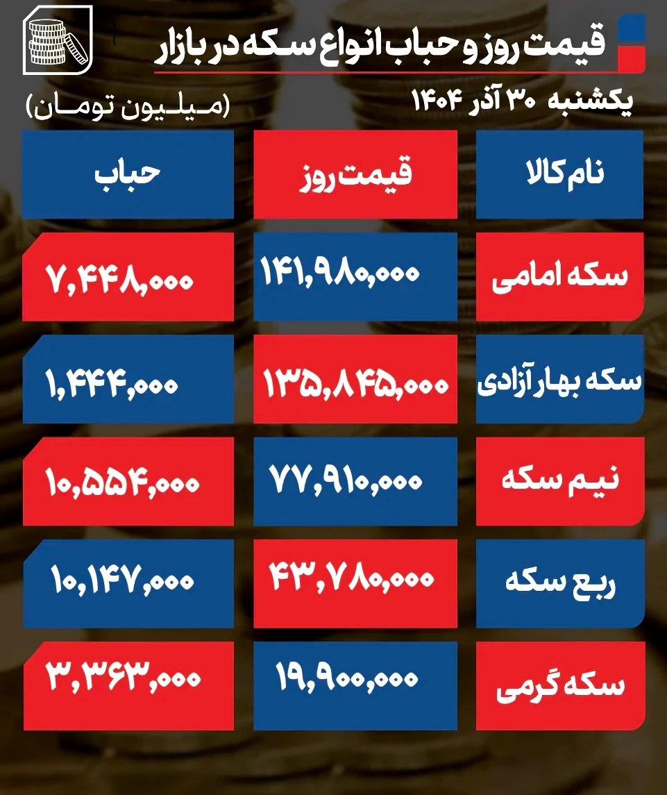 در بازار سکه، کارشناسان بازه قیمتی ۱۴۱ تا ۱۴۳ میلیون تومانی را برای سکه امامی پیش‌بینی می‌کنند و معتقدند قطعات سنگین، تحت فشار افت دلار با احتیاط بیشتری معامله خواهند شد. در مقابل، احتمال حفظ یا حتی رشد محدود قیمت در سکه‌های سبک به دلیل افزایش حباب و تقاضای خرد وجود دارد.