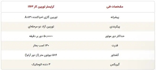 هدف از این کار تنها جلب توجه نبود. کرایسلر عمیقا باور داشت که فناوری توربین میتواند صنعت خودروسازی را متحول کند. دلیلش هم ساده بود؛ موتور توربین قطعات متحرک بسیار کمتری داشت و میتوانست با تقریبا هر نوع سوخت قابل اشتعالی از جمله نفت سفید، دیزل و حتی الکل کار کند. این یعنی خودرویی با دوام بیشتر و نیاز به نگهداری کمتر.