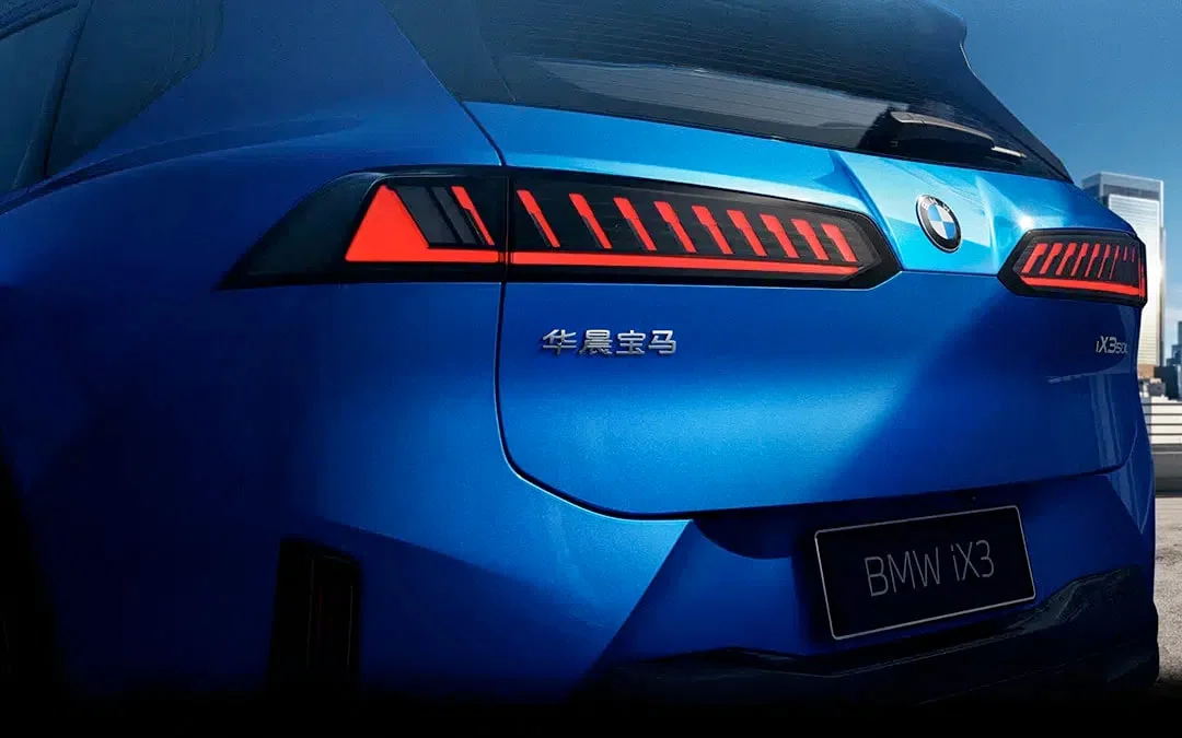 در بخش عقب، خودرو همچنان از چراغهای افقی L شکل بهره میبرد. نکتهٔ قابل توجه، درج نشان «Brilliance BMW» و «iX3 50L» است که به تولید محلی در چین و نسخهٔ ویژهٔ فاصله محوری بلند اشاره دارد.