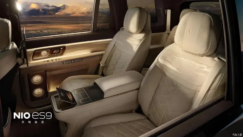 ES9 از چیدمان ۲+۲+۲ ششنفره بهره میبرد. صندلیهای ردیف دوم از نوع جاذبه صفر (zero-gravity) هستند و زاویهٔ خواب بسیار زیادی دارند. صندلیهای عقب دارای سردکن، گرمکن و ماساژور هستند. ردیف دوم و سوم به پنجرههای سایهبان الکتروکرومیک انعطافپذیر مجهزند که سه حالت حریم خصوصی، عایق حرارتی و شفاف را ارائه میدهند.