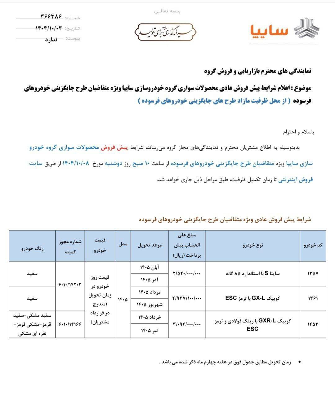 شرایط فروش محصولات سایپا اعلام شده است و خریداران فرصت محدودی برای ثبت نام دارند.