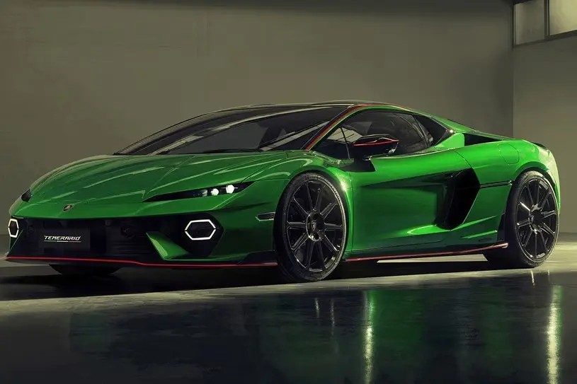 - معرفی تمراریو: تمراریو بهعنوان اولین سوپرکار با موتور V8 توئینتوربو در تاریخ لامبورگینی، از پلتفرم جدید HPEV (High Performance Electrified Vehicle) استفاده میکند. این خودرو با موتور کاملاً جدید طراحیشده در سانتاگاتا بولونزه و سه موتور الکتریکی، جایگزین V10 تنفس طبیعی هوراکان شد تا عملکرد و پایداری محیطی را بهبود بخشد. تمراریو با طراحی آیرودینامیک پیشرفته و شاسی آلومینیومی جدید، استاندارد جدیدی در کلاس سوپرکارها تعریف میکند. تولید در کارخانه سانتاگاتا بولونزه انجام میشود و این مدل بخشی از هدف لامبورگینی برای کاهش ۴۰% انتشار CO2 تا ۲۰۳۰ است.