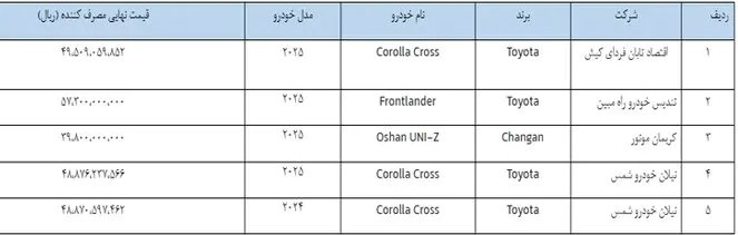 مشخصات خودرو های عرضه شده در سامانه یکپارچه