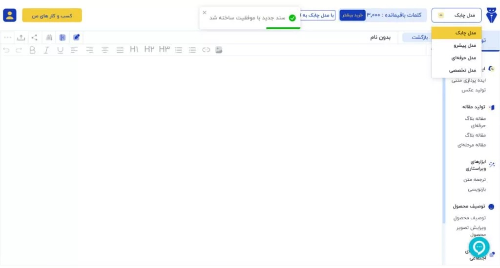 با سرویسهای هوش مصنوعی خودنویس میتوانید با اصول سئو برای وبلاگ خود مقاله تولید کنید. همچنین این ابزار بهدرستی از کلمات، جملات و دستور زبان فارسی استفاده میکند. امکان تولید مقاله تألیفی و حرفهای از دیگر قابلیتهای آن است.