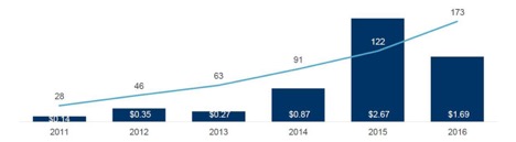 روند تأمین مالی شرکتهای اینشورتک ایالات متحده از سال 2011 تا 2016 (قیمتها به میلیون دلار است)