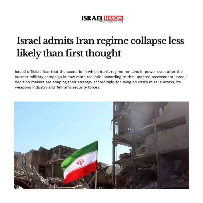 این رسانه نوشت: پس از ماهها رویارویی مستقیم و فشار اقتصادی، مقامات ارشد اطلاعاتی اسرائیل اذعان کردهاند که ثبات حکومت ایران بالاتر از برآوردهای قبلی است.