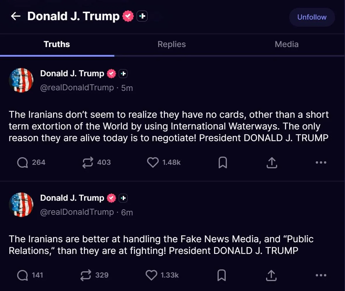 تهدید دوباره ترامپ در دو پست پیاپی را در ادامه می خوانید.