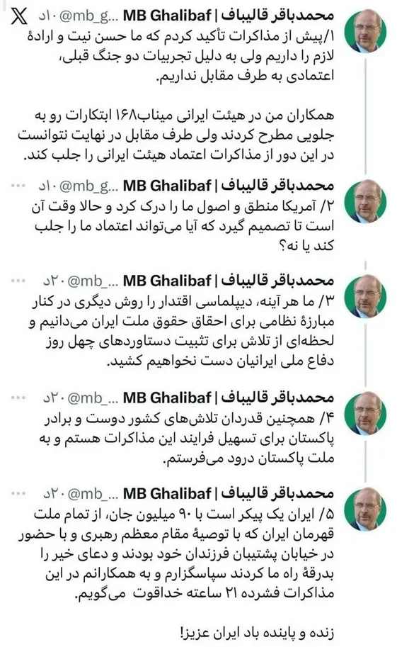 محمدباقر قالیباف، رئیس مجلس، در حساب کاربری خود در شبکه اجتماعی ایکس نوشت: