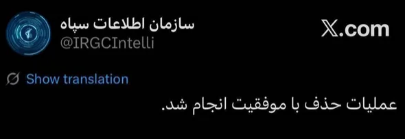سازمان اطلاعات سپاه در نوشته ای در شبکه اجتماعی ایکس از یک عملیات حذف موفقیت آمیز خبر داد.