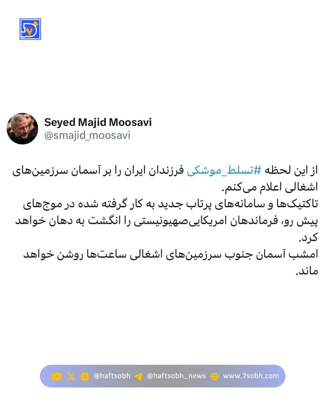به گزارش هفت صبح فرمانده نیروی هوافضای سپاه اعلام کرد: