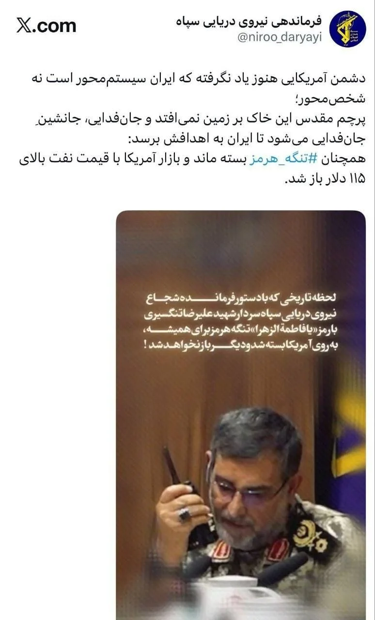 در شرایطی که دشمنان با شکستهای پیدرپی در صحنه نبرد، امنیت حیاتی خود در منطقه را متزلزل میبینند، تنگه هرمز و خلیج فارس همچنان در قبضه اقتدار فرزندان ملت رزمنده باقی مانده و راهبردهای این شهید والامقام در مدیریت صحنه نبرد، الهامبخش تداوم رزم دریایی خواهد بود.