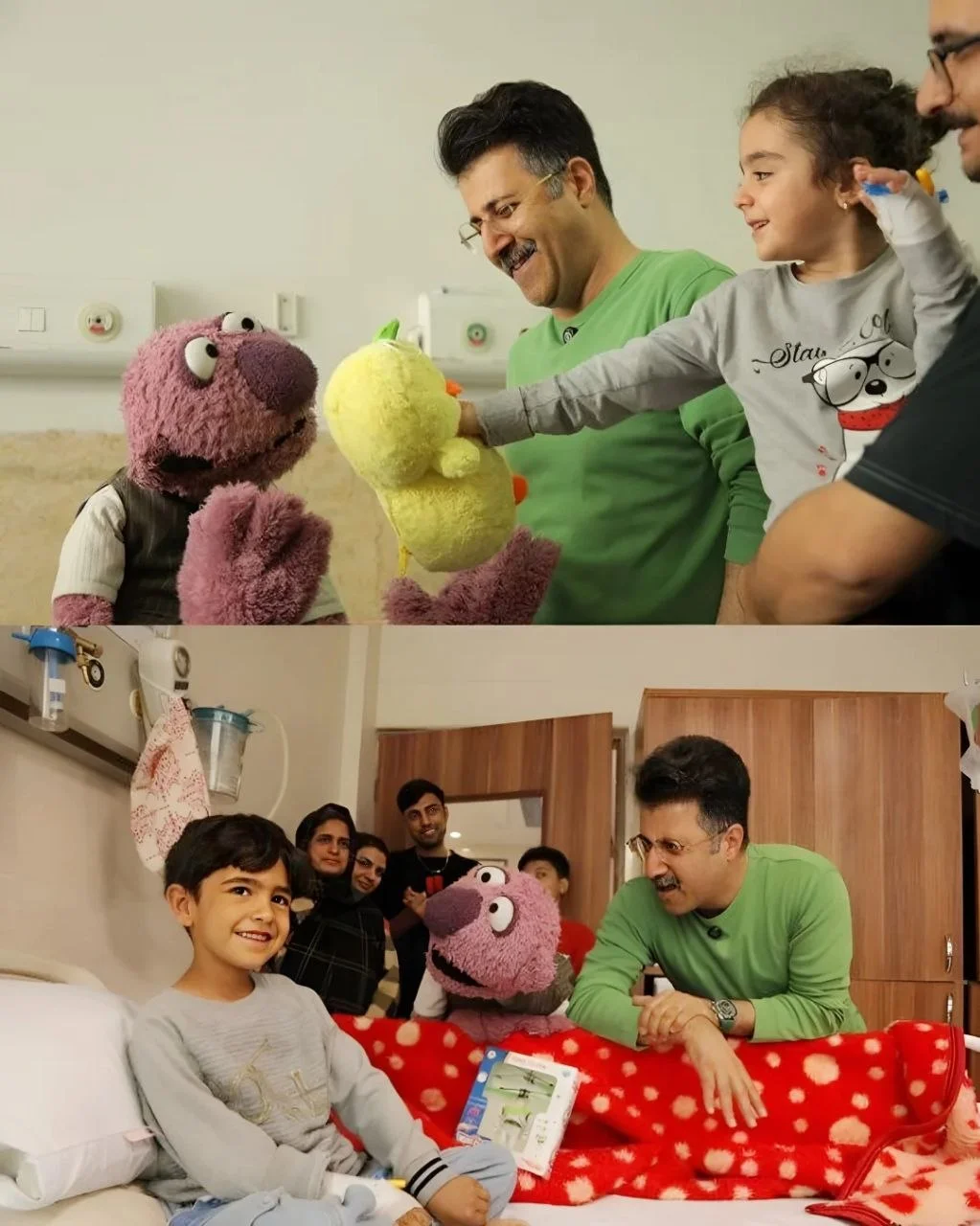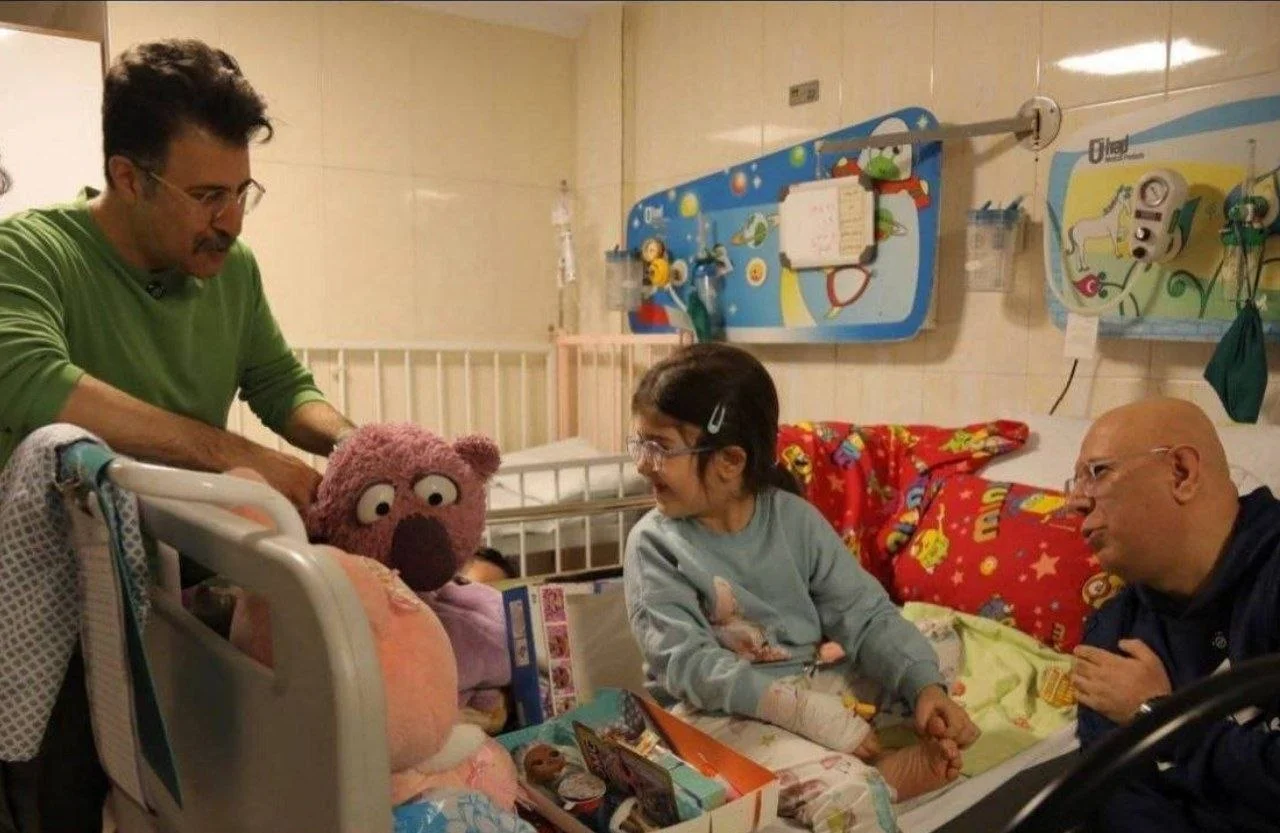 ملاقات هومن حاجی عبداللهی و جنابخان با کودکان مجروح