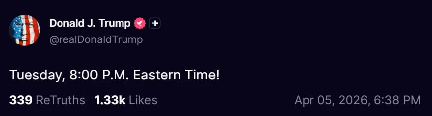 پست جدید ترامپ: سهشنبه، ساعت ۸:۰۰ بعدازظهر به وقت شرقی!