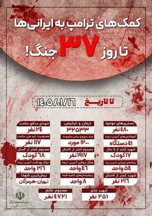 وزارت بهداشت، آخرین آمار و ارقام مصدومان، شهدای و آسیبهای وارده به نظام سلامت در پی حملات آمریکا ـ اسرائیل را اعلام کرد.
