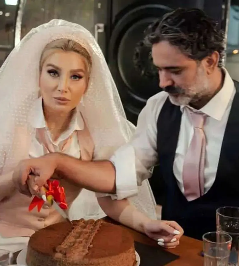 کیک عروسی عمار تفتی و همسر جوانش با لباس عروس صورتی را در ادامه مشاهده می کنید.