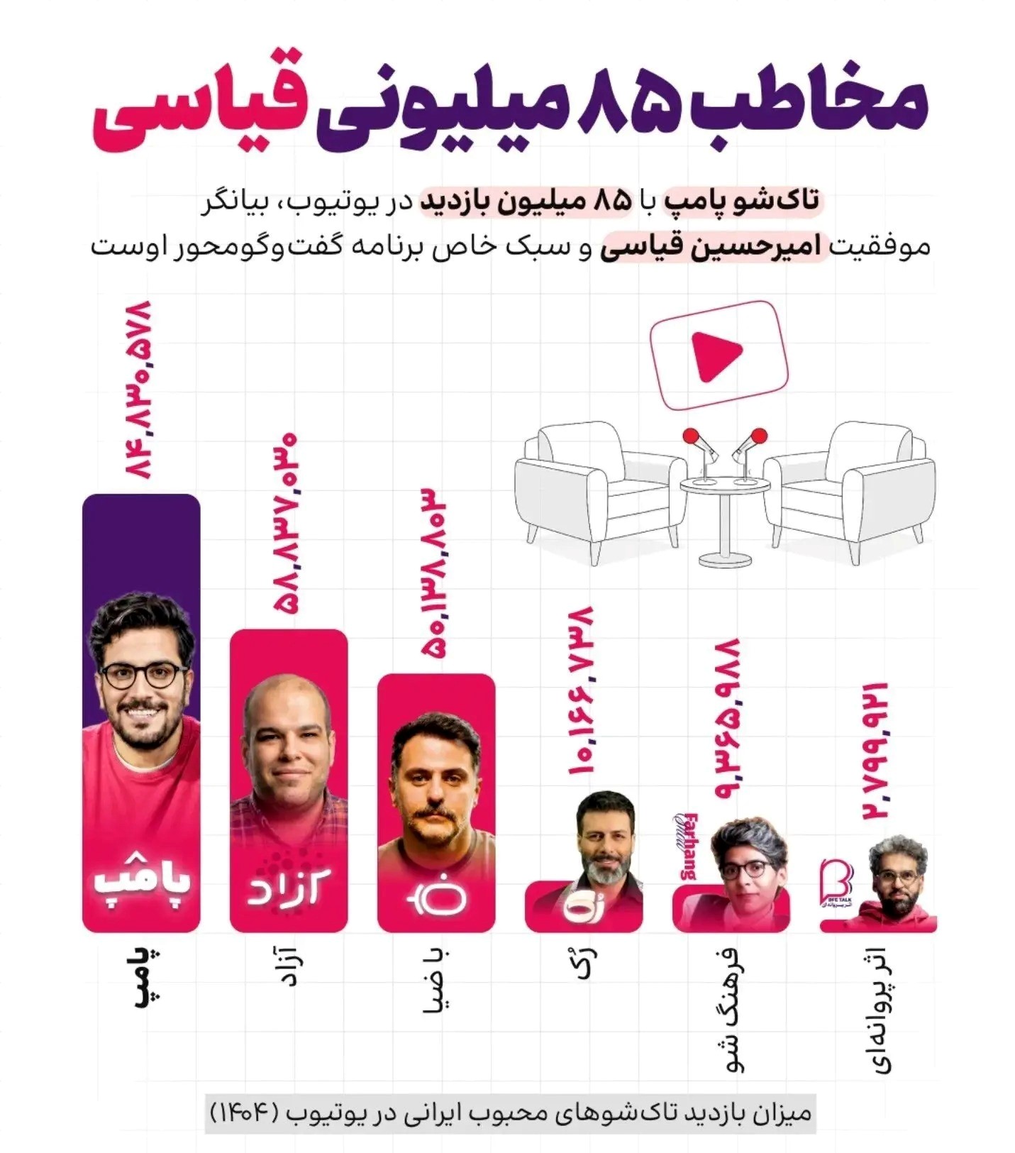به گزارش هفت صبح ثبت رکورد ۸۵ میلیون بازدید برای «پامپ» تثبیت حکمرانی مطلق ژانر سرگرمی در یوتیوب فارسی است.