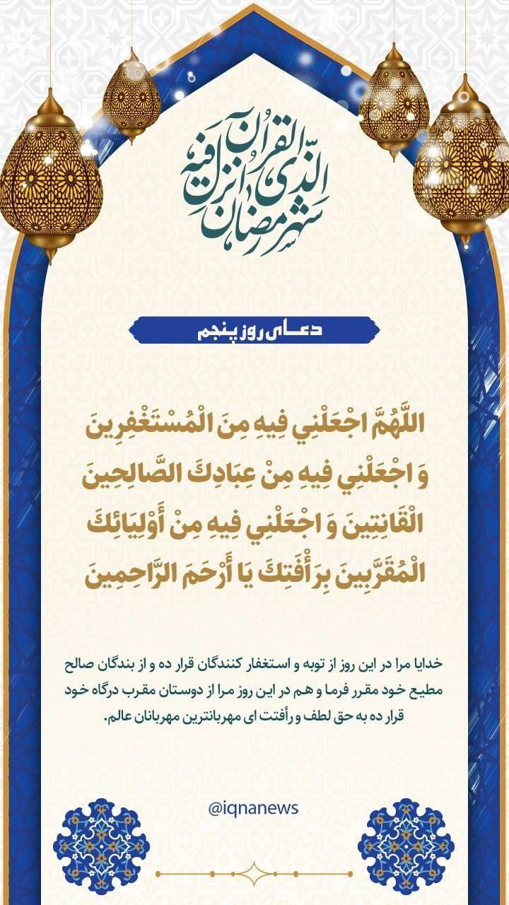 متن و ترجمه دعای روز پنجم ماه مبارک رمضان را در زیر میخوانید.