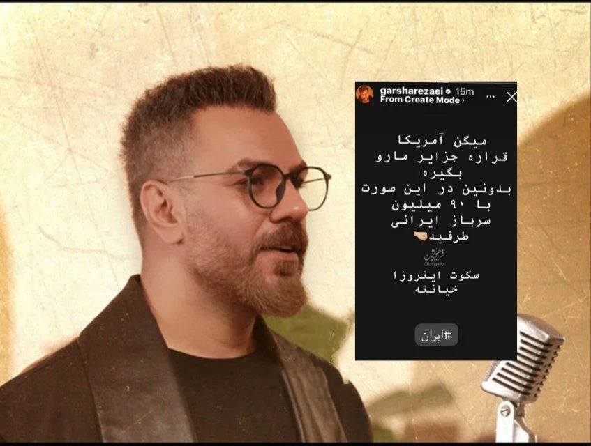 این خواننده پاپ در واکنش به ادعای ترامپ مبنی بر حمله زمینی به ایران گفته: «میگن آمریکا قراره جزایر مارو بگیره؛ در این صورت بدونین با ۹۰ میلیون سرباز ایرانی طرفید. سکوت این روزها خیانته.»