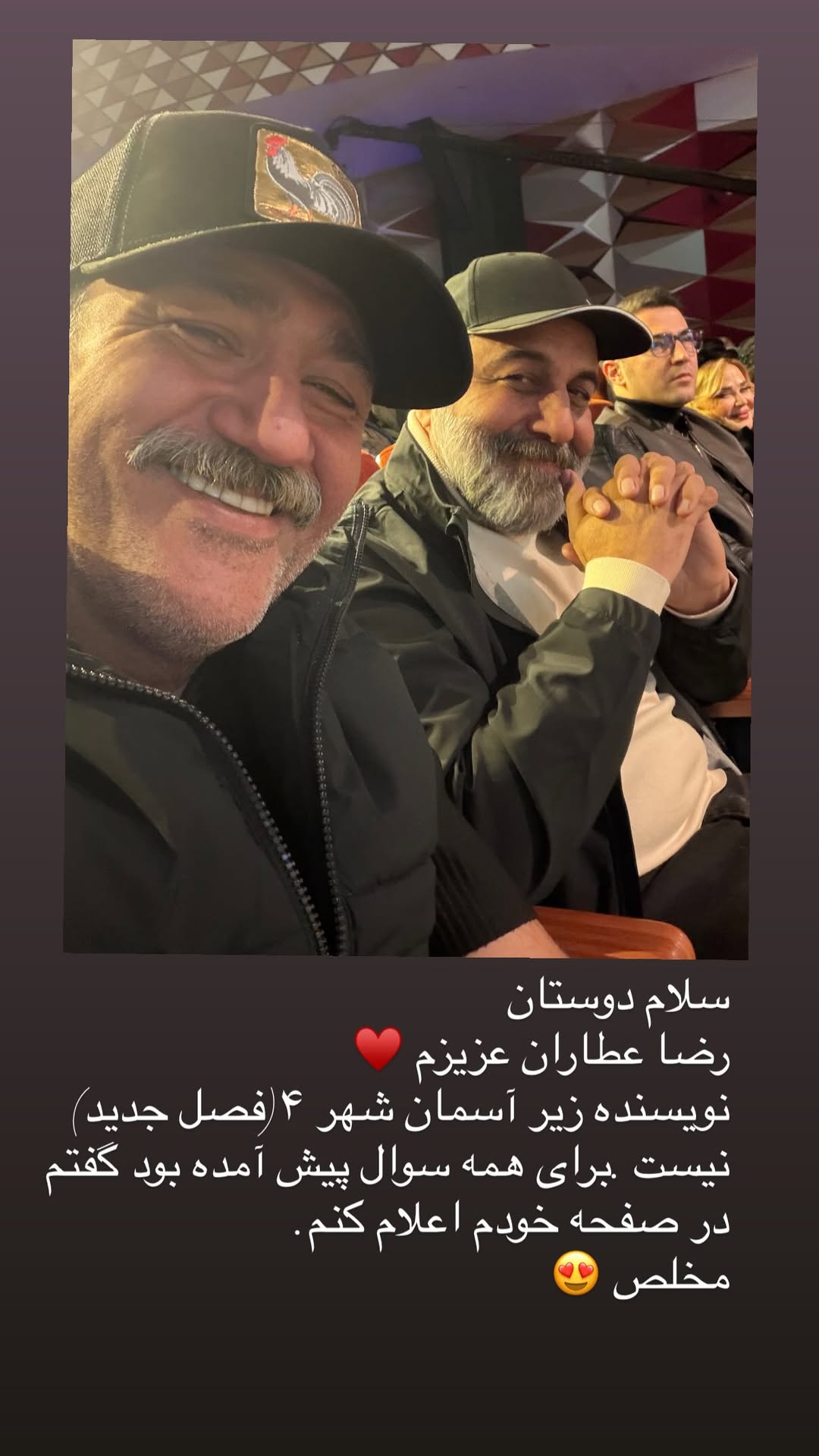 به گزارش هفت صبح، مهران غفوریان، بازیگر سینما و تلویزیون، با انتشار عکسی در کنار رضا عطاران در صفحه اینستاگرام خود به شایعات مطرحشده درباره فصل جدید سریال «زیر آسمان شهر» واکنش نشان داد. او در این پست اعلام کرد که رضا عطاران، بازیگر و کمدین شناختهشده و از چهرههای تأثیرگذار کمدی ایران، نویسندگی فصل چهارم این مجموعه را بر عهده ندارد؛ خبری که برای بسیاری از مخاطبان قدیمی این سریال ناراحتکننده بود. غفوریان در توضیح این موضوع نوشت که به دلیل پرسشهای مکرر کاربران، تصمیم گرفته این نکته را بهصورت رسمی در صفحه شخصیاش اعلام کند و به گمانهزنیها پایان دهد.