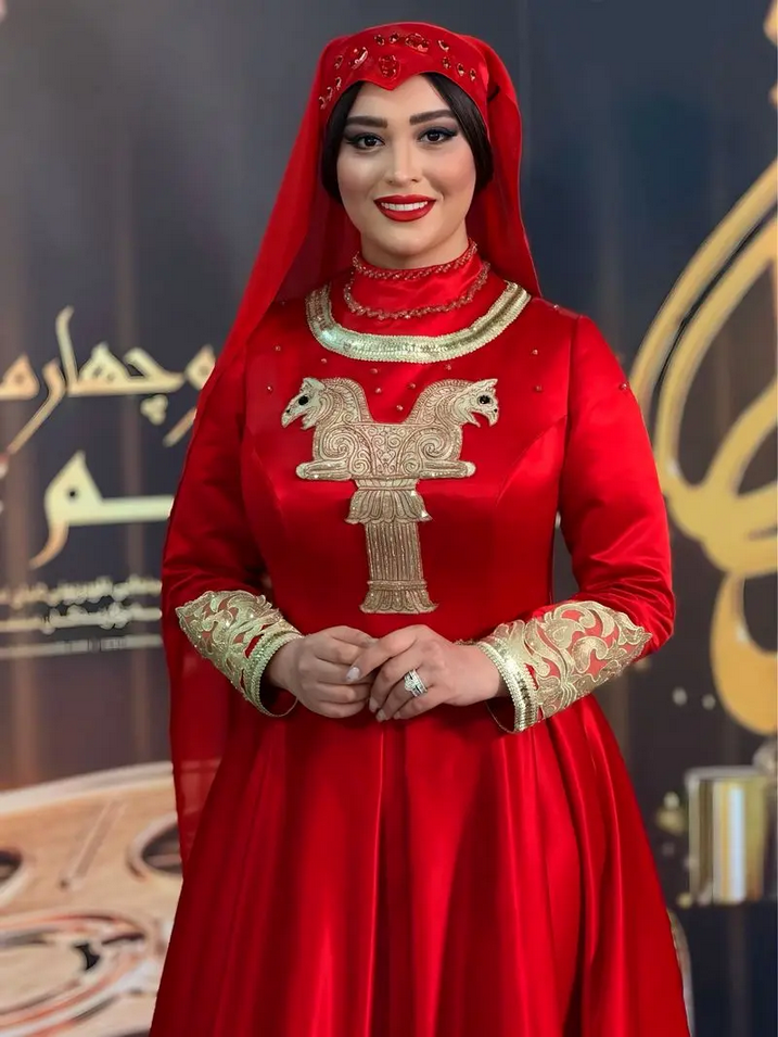 ساغر استاد شریف، همسر امید معلم، در آستانه زمستان و در بیستوچهارمین مراسم تندیس حافظ با پوششی جالب توجه ظاهر شد. پوششی که نمادهای هخامنشی بر روی آن دیده می شد و به گفته خود او با الهام از لباس زنان در دوره هخامنشی طراحی شده است.