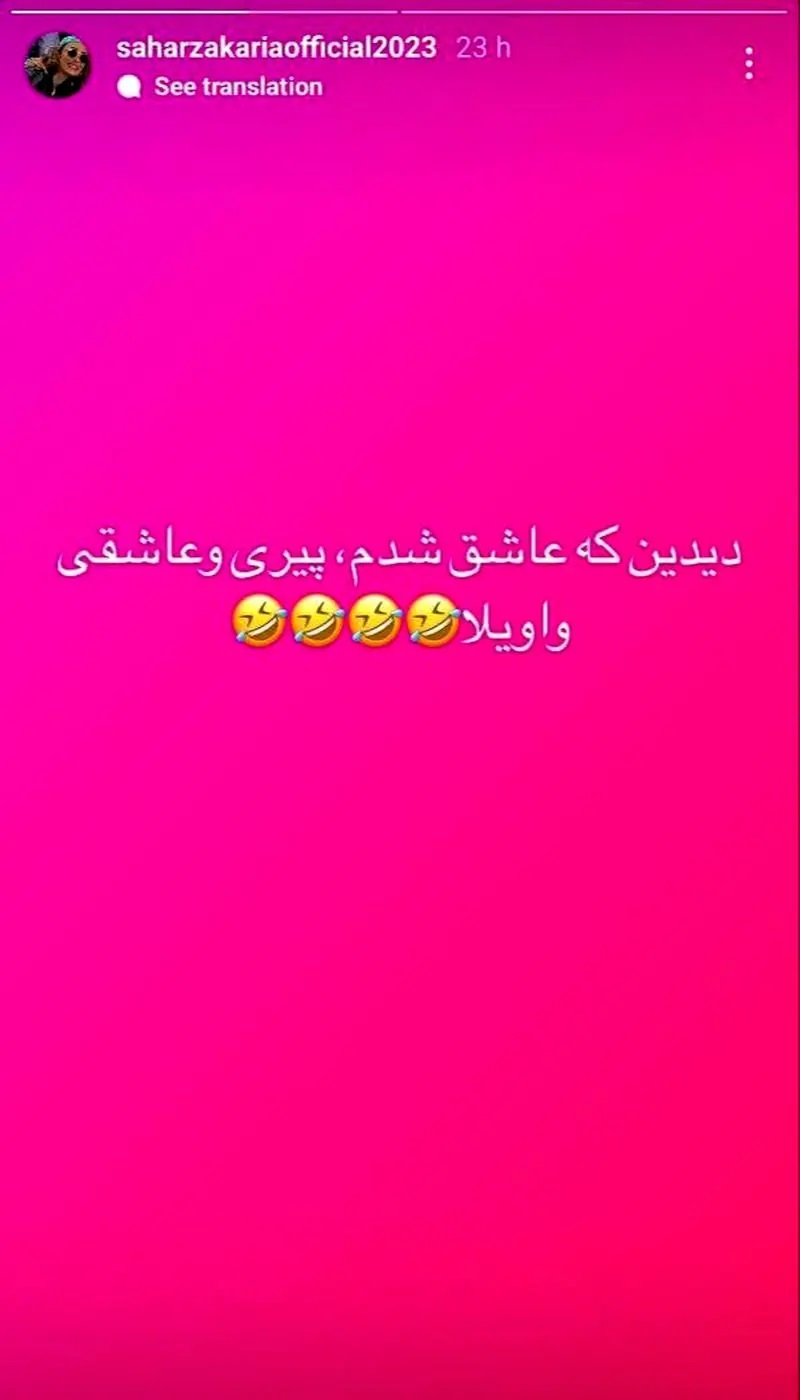 سحر زکریا مدت ها پیش در این استوری خبر عاشق شدنش را علنی اعلام کرد و نوشت : دیدین که عاشق شدم