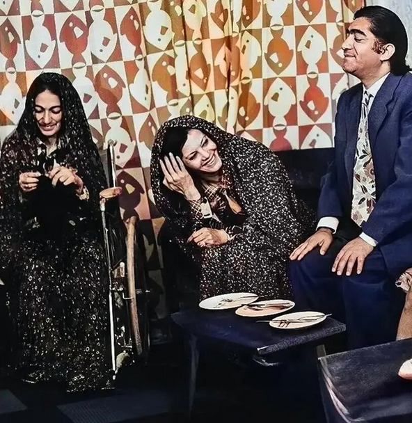 در ادامه تصویری ترمیم شده از فخری خوروش را در ۴۵ سالگی و در کنار عزت الله انتظامی و در سال ۵۳ مشاهده میکنید. این تصویر در نمایی از فیلم «غبارنشینها» به ثبت رسیده است.