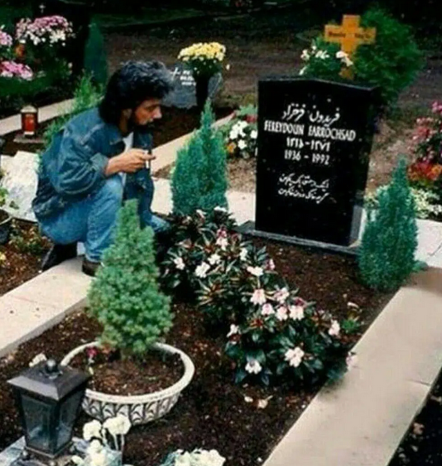 عکس داریوش اقبالی را بر سر مزار فریدون فرخزاد در دهه 70 را ببینید.